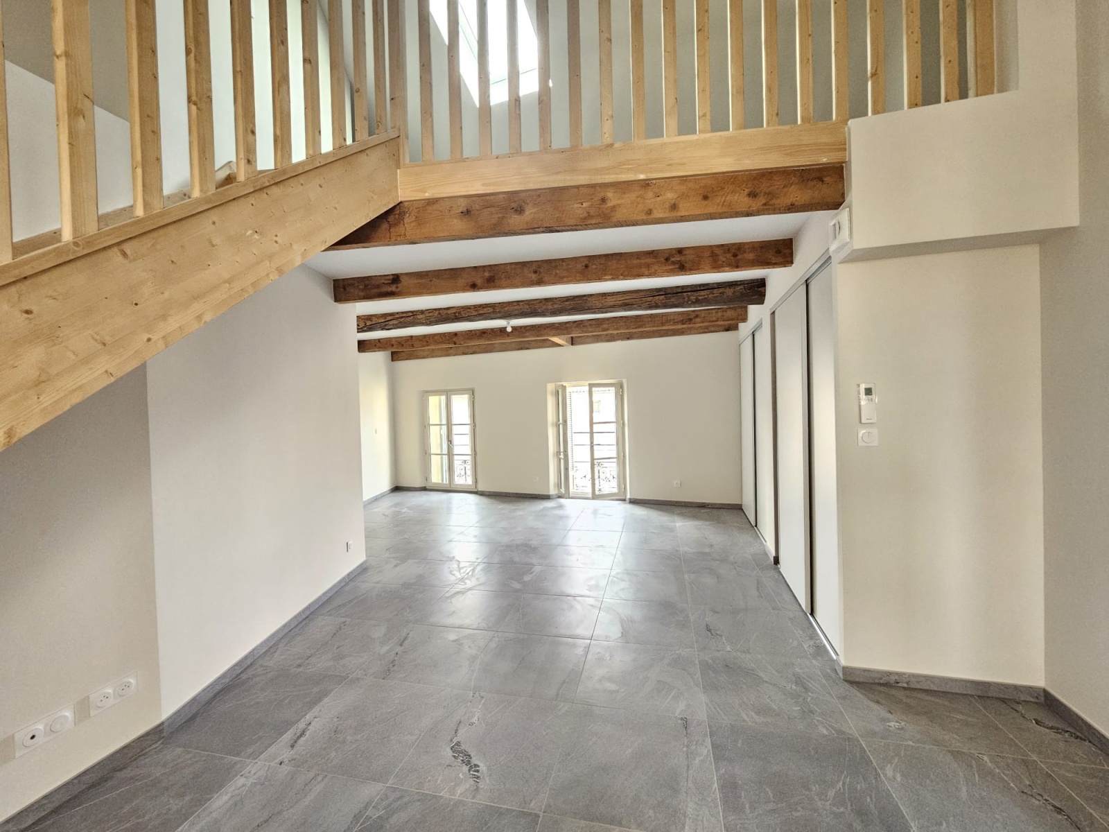 A l'étage deux grandes pièces en mezzanine pouvant faire office de chambre dont une avec salle d'eau et Wc.